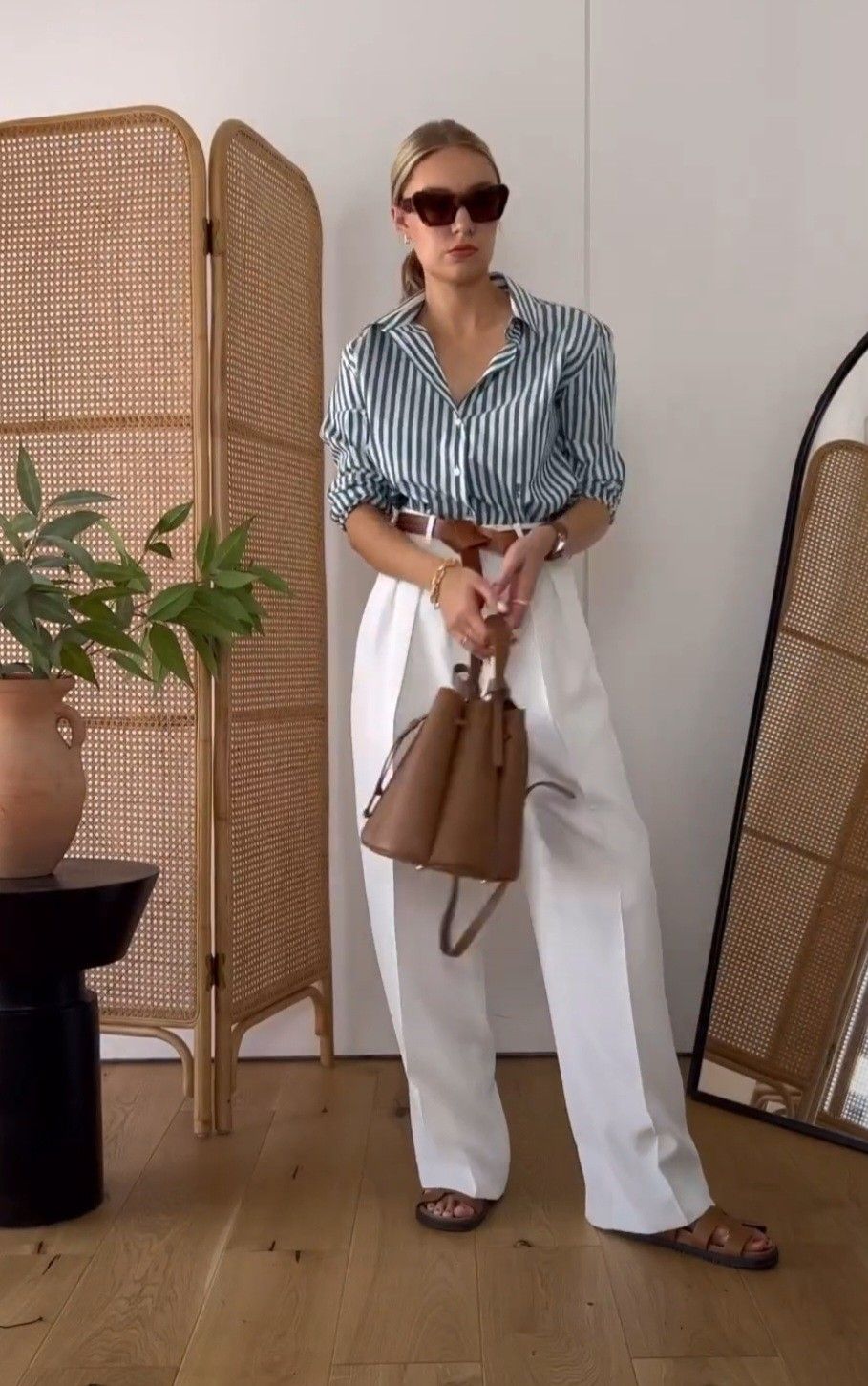 A sculptural bucket bag with wave-shaped leather panels that create a fluted, flower-like silhouette.